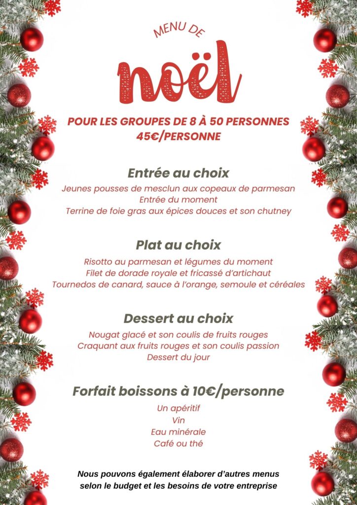 Entre foie gras maison aux épices douces, risotto au parmesan, dorade royale ou encore nougat glacé… votre équipe va se régaler !